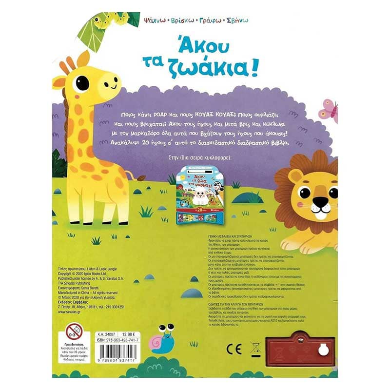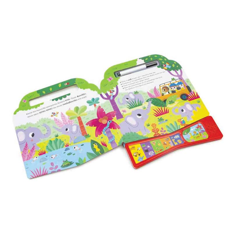 Άκου τους ήχους και μετά βρες και κύκλωσε με τον μαρκαδόρο όλα αυτά που βγάζουν τους ήχους που άκουσες! Ανακάλυψε 20 ήχους σ΄ αυτό το διασκεδαστικό διαδραστικό βιβλίο.